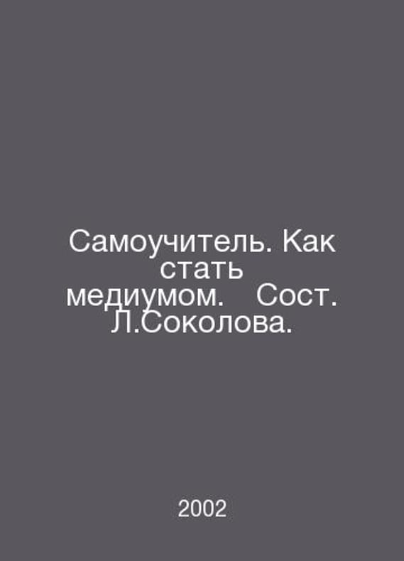 Self-taught. How to become a medium. In Russian /Samouchitel. Kak stat mediumom.†Sost. L.Sokolova. M.: ACT 2002. Contact us for details or to request photos of available books. Delivery of this book could take longer than normal due to additional handling time before shipping, and no rush delivery options are available. Please let us know if you have a specific date by which you need to receive your order. SKUalb064cb70d1c43ecf4