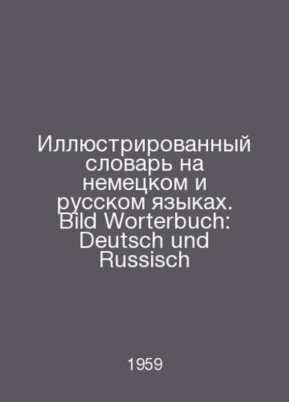 Illustrated Dictionary in German and Russian. Bild Worterbuch: Deutsch und Russisch In Russian /Illyustrirovannyy slovar na nemetskom i russkom yazykakh. Bild Worterbuch: Deutsch und Russisch With 181 tables and bar drawings and 8 colour tables. Leipzig Verlag Enzyklopadie 1959.. Contact us for details or to request photos of available books. SKUalb06abe90ae52d1b28.