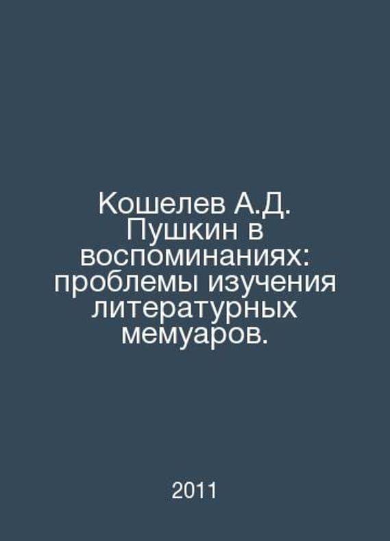 Koshelev A.D. Pushkin in Memories: The Problems of Studying Literary Memoirs. In Russian /Koshelev A.D. Pushkin v vospominaniyakh: problemy izucheniya literaturnykh memuarov. Veliky Novgorod State University 2011. Contact us for details or to request photos of available books. Delivery of this book could take longer than normal due to additional handling time before shipping, and no rush delivery options are available. Please let us know if you have a specific date by which you need to receive your order. SKUalb06dd7403f17132dd