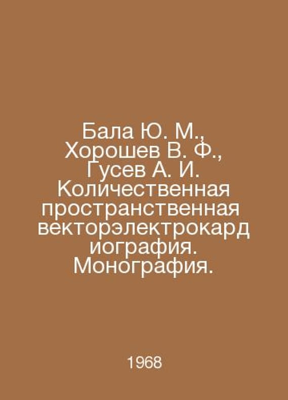 Bala Yu. M., Khoroshev V. F., Gusev A. I. Quantitative spatial vector electrocardiography. Monography. In Russian /Bala Yu. M., Khoroshev V. F., Gusev A. I. Kolichestvennaya prostranstvennaya vektorelektrokardiografiya. Monografiya. Editor T.I. Baskakova. Voronezh. Voronezh University Publishing House. 1968.. Contact us for details or to request photos of available books. SKUalb076b8ce5594941f7.