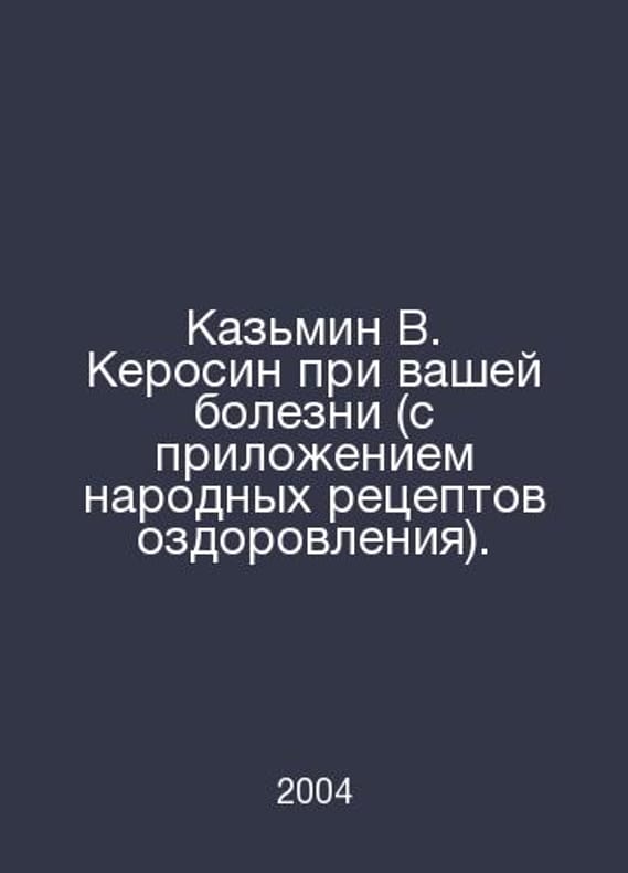 Kazmin V. Kerosene in your illness (with the attachment of popular recipes for health improvement). In Russian /Kazmin V. Kerosin pri vashey bolezni (s prilozheniem narodnykh retseptov ozdorovleniya). Rostov 2004. Contact us for details or to request photos of available books. Delivery of this book could take longer than normal due to additional handling time before shipping, and no rush delivery options are available. Please let us know if you have a specific date by which you need to receive your order.SKUalb07e4a948ef5d35f2