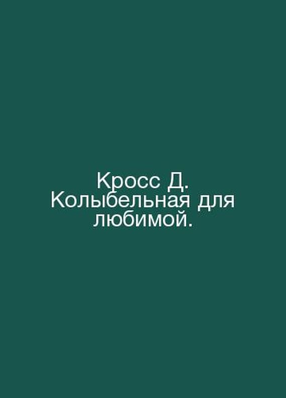Cross D. Lullaby for the Lullaby. In Russian /Kross D. Kolybelnaya dlya lyubimoy. M Editor of the international magazine Panorama 192c. Contact us for details or to request photos of available books. Delivery of this book could take longer than normal due to additional handling time before shipping, and no rush delivery options are available. Please let us know if you have a specific date by which you need to receive your order. SKUalb080a558646b33cfd
