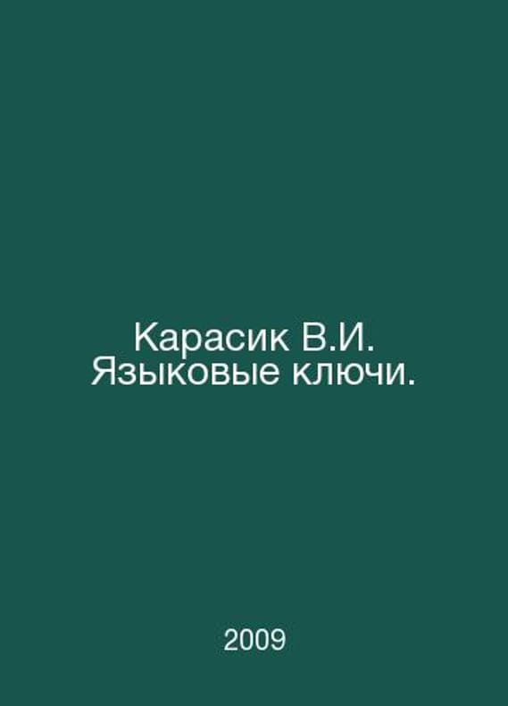 Karasik V.I. Language keys. In Russian /Karasik V.I. Yazykovye klyuchi. M., Gnozis. 2009.. Contact us for details or to request photos of available books. SKUalb08888e8d1332976b.
