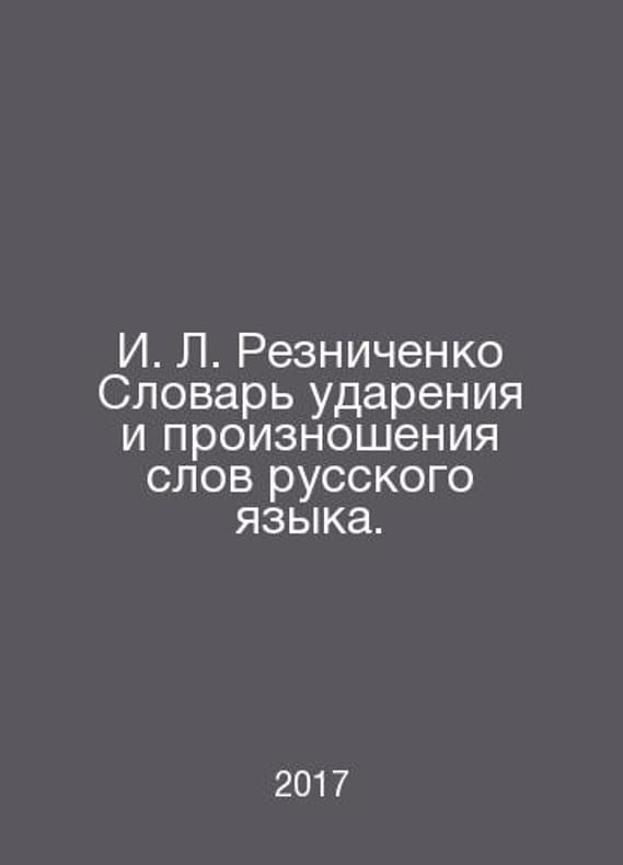 I. L. Reznichenko Dictionary of accents and pronunciation of words of the Russian language. In Russian /I. L. Reznichenko Slovar udareniya i proiznosheniya slov russkogo yazyka. Moscow, ACT-Press School 2017..Contact us for details or to request photos of available books. Delivery of this book could take longer than normal due to additional handling time before shipping, and no rush delivery options are available. Please let us know if you have a specific date by which you need to receive your order. SKUalb08cc421719967af1