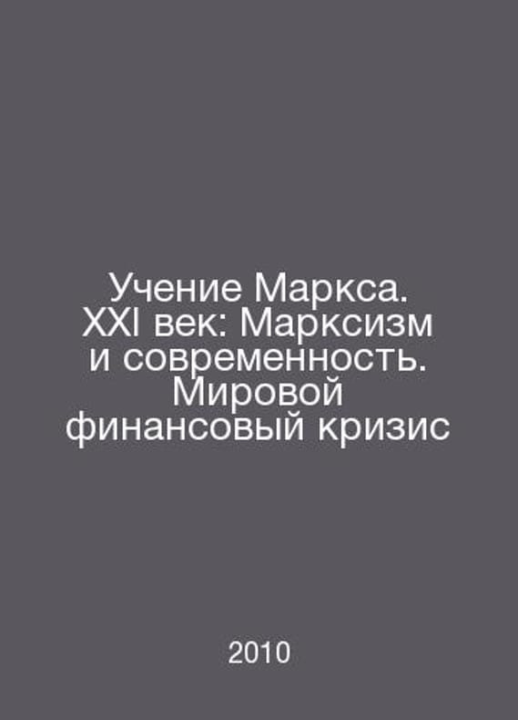 The Teachings of Marx. The 21st Century: Marxism and Modernity. The Global Financial Crisis In Russian /Uchenie Marksa. XXI vek: Marksizm i sovremennost. Mirovoy finansovyy krizis Series: Reflecting on Marxism, edited by Dzhokhadze D. M. Krasand, 2010.Contact us for details or to request photos of available books. Delivery of this book could take longer than normal due to additional handling time before shipping, and no rush delivery options are available. Please let us know if you have a specific date by which you need to receive your order.SKUalb08e100ed3390a981