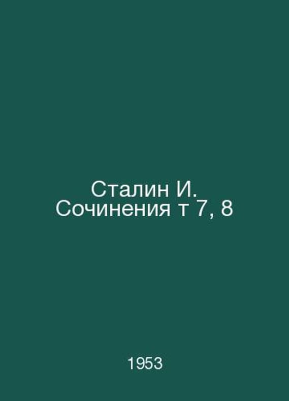 Stalin I. Works vol. 7, 8 In Russian /Stalin I. Sochineniya t 7, 8 Stalin I. Works vol. 7, 8 1953.Contact us for details or to request photos of available books. Delivery of this book could take longer than normal due to additional handling time before shipping, and no rush delivery options are available. Please let us know if you have a specific date by which you need to receive your order.SKUalb09436f58b613168a