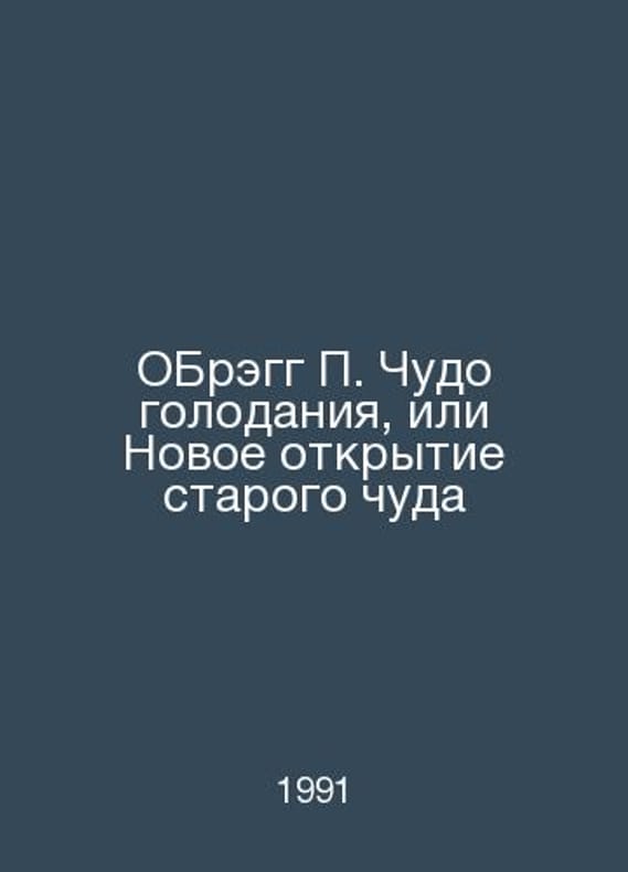 Obragg The Miracle of Hunger, or the Rediscovery of the Old Miracle In Russian /OBregg Chudo golodaniya, ili Novoe otkrytie starogo chuda Kondopoga 1991.Contact us for details or to request photos of available books. Delivery of this book could take longer than normal due to additional handling time before shipping, and no rush delivery options are available. Please let us know if you have a specific date by which you need to receive your order.SKUalb09804ccc7dd53aaf
