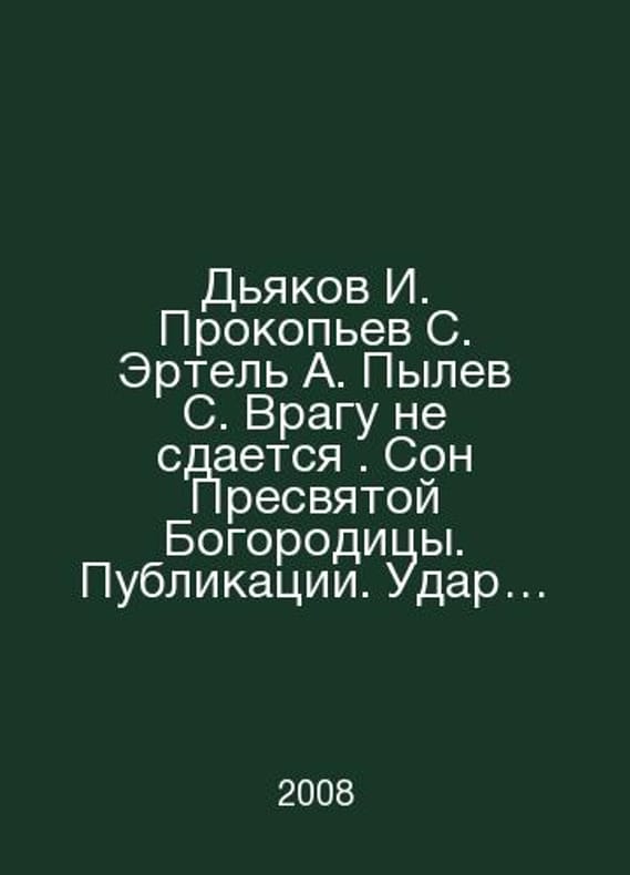 Diakov I. Prokopyev S. Ertel A. Pylev S. does not surrender to the Enemy. The Dream of the Blessed Virgin. Publications In Russian /Dyakov I. Prokopev S. Ertel A. Pylev S. Vragu ne sdaetsya. Son Presvyatoy Bogoroditsy. Publikatsii. Udar vozmezdiya. Moscow 20082 2008.Contact us for details or to request photos of available books. Delivery of this book could take longer than normal due to additional handling time before shipping, and no rush delivery options are available. Please let us know if you have a specific date by which you need to receive your order.SKUalb09b24680cbf6cd3c