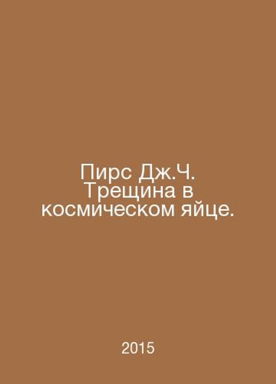 Piers J.C. Crack in the Space Egg. In Russian /Pirs Dzh.Ch. Treshchina v kosmicheskom yaytse. New Concepts of Reason and Reality. E. Velichko. Series: Technology of Freedom. M. POSTUM 2015. Contact us for details or to request photos of available books. Delivery of this book could take longer than normal due to additional handling time before shipping, and no rush delivery options are available. Please let us know if you have a specific date by which you need to receive your order. SKUalb0a892d808d4bf44f