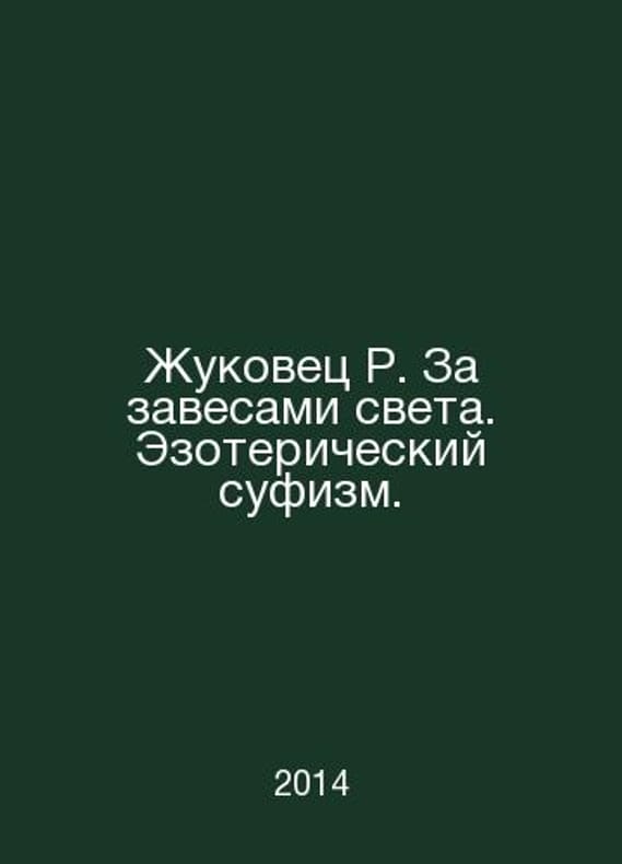 Zhukovets R. Behind the Curtains of Light. Esoteric Sufism. In Russian /Zhukovets R. Za zavesami sveta. Ezotericheskiy sufizm. M., Publishing House # 16. 2014 year. Contact us for details or to request photos of available books. Delivery of this book could take longer than normal due to additional handling time before shipping, and no rush delivery options are available. Please let us know if you have a specific date by which you need to receive your order. SKUalb0aff0115c4543e4a