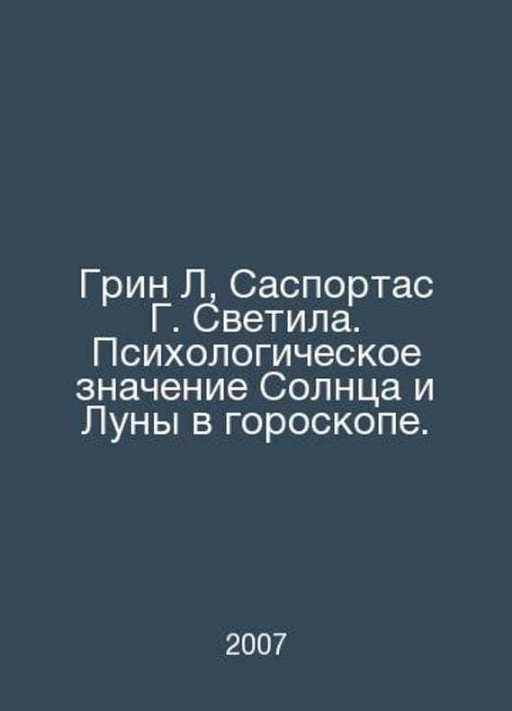 Green L., Sasportas G. Luminescence. Psychological significance of the Sun and Moon in the horoscope. In Russian /Grin L., Sasportas G. Svetila. Psikhologicheskoe znachenie Solntsa i Luny v goroskope. Series: Classics of World Astrology. Moscow: Publisher Fedorov, 2007. 240 p. We have thousands of titles and often several copies of each title may be available. Please feel free to contact us for a detailed description of the copies available. SKUalb3d28131ee97be3c1.