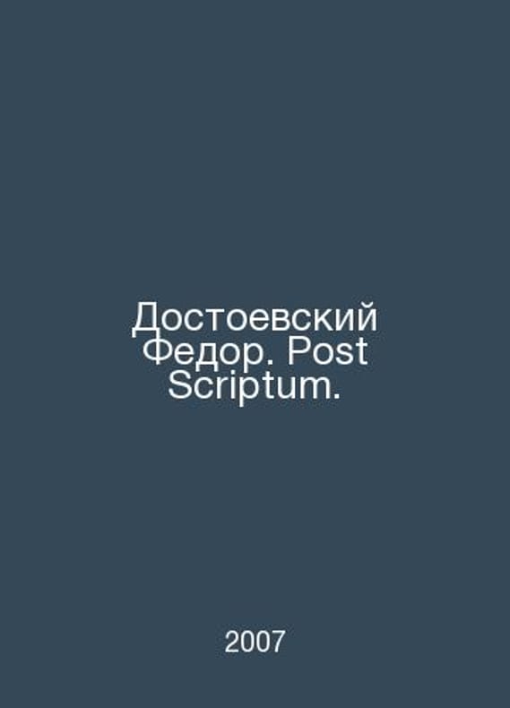 Dostoevsky Fedor. Post Scriptum. In Russian /Dostoevskiy Fedor. Post Scriptum. Series: Antology of Thought M Exmo 2007. Contact us for details or to request photos of available books. Delivery of this book could take longer than normal due to additional handling time before shipping, and no rush delivery options are available. Please let us know if you have a specific date by which you need to receive your order.SKUalb0bfd038afd4ea0c5