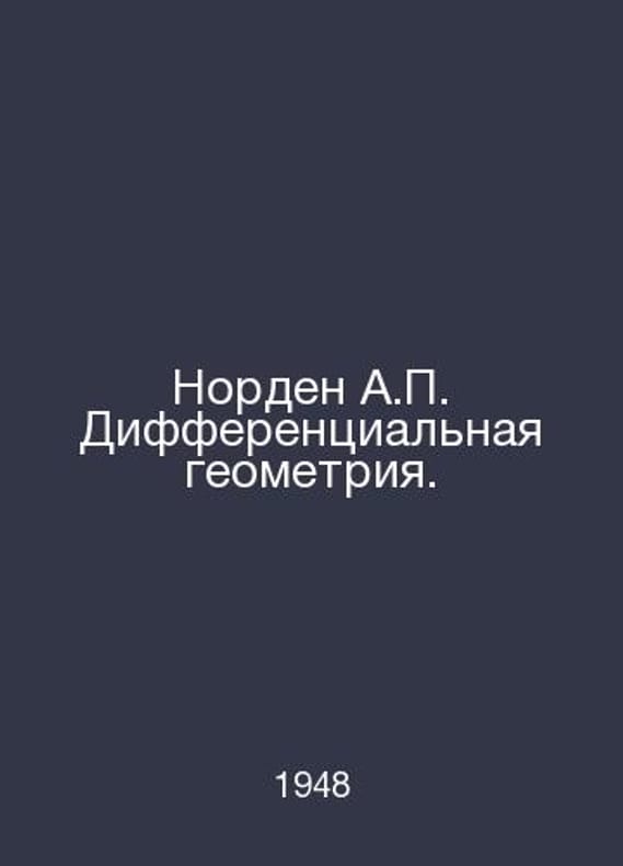 Norden A. Differential Geometry. In Russian /Norden A. Differentsialnaya geometriya. M. Uchpedgiz 1948.Contact us for details or to request photos of available books. Delivery of this book could take longer than normal due to additional handling time before shipping, and no rush delivery options are available. Please let us know if you have a specific date by which you need to receive your order.SKUalb0ce415e0125fe7b7