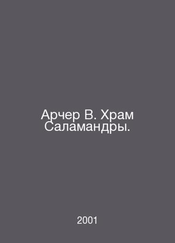 Archer W. Salamander Temple. In Russian /Archer V. Khram Salamandry. Series: Crossroads of the Gods M Centropolygraph 2001. Contact us for details or to request photos of available books. Delivery of this book could take longer than normal due to additional handling time before shipping, and no rush delivery options are available. Please let us know if you have a specific date by which you need to receive your order.SKUalb0e44e56c5118aff3