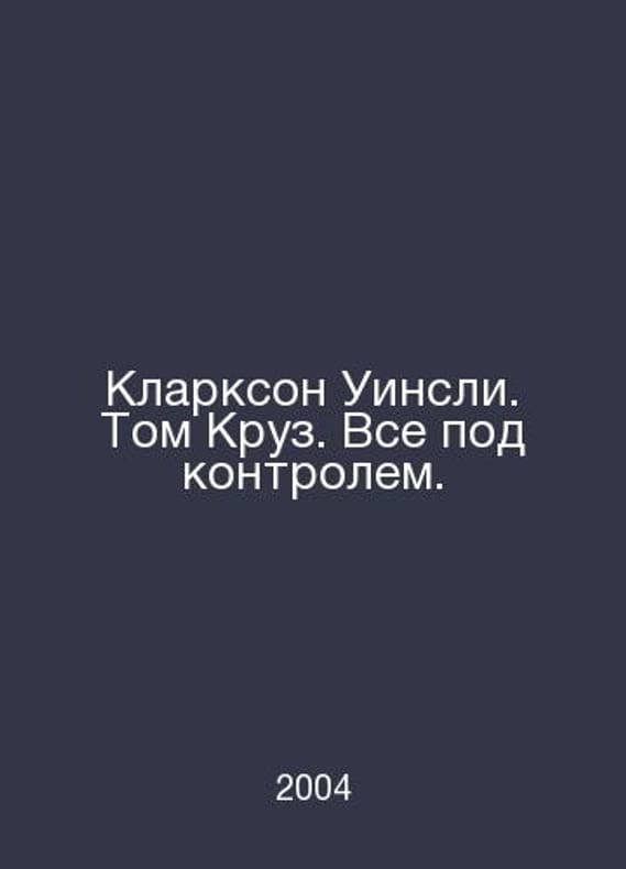 Clarkson Winsley. Tom Cruise. Everything is under control. In Russian /Klarkson Uinsli. Tom Kruz. Vse pod kontrolem. Ill.: DILA, 2004.Contact us for details or to request photos of available books. Delivery of this book could take longer than normal due to additional handling time before shipping, and no rush delivery options are available. Please let us know if you have a specific date by which you need to receive your order.SKUalb0e94463bf40e399b