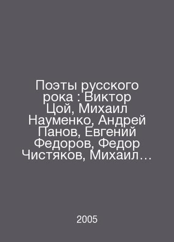 Poets of Russian rock: Viktor Tsoi, Mikhail Naumenko, Andrei Panov, Evgeny Fedorov, Fedor Chistyakov, Mikhail Bashakov In Russian /Poety russkogo roka: Viktor Tsoy, Mikhail Naumenko, Andrey Panov, Evgeniy Fedorov, Fedor Chistyakov, Mikhail Bashakov Series: Anthology of Russian Rock Poetry. S.Pb.ABC Classics 2005.Contact us for details or to request photos of available books. Delivery of this book could take longer than normal due to additional handling time before shipping, and no rush delivery options are available. Please let us know if you have a specific date by which you need to receive your order.SKUalb0ee3e33e9bc9191a