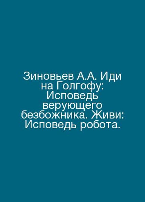 Zinoviev A.A. Go to Golgotha: Confession of the believer atheist. Live: Confession of the robot. In Russian /Zinovev A.A. Idi na Golgofu: Ispoved veruyushchego bezbozhnika. Zhivi: Ispoved robota. Ed. O.M. Zinoviev, A.S. Blinov.Contact us for details or to request photos of available books. Delivery of this book could take longer than normal due to additional handling time before shipping, and no rush delivery options are available. Please let us know if you have a specific date by which you need to receive your order.SKUalb0eee77387a6d3128