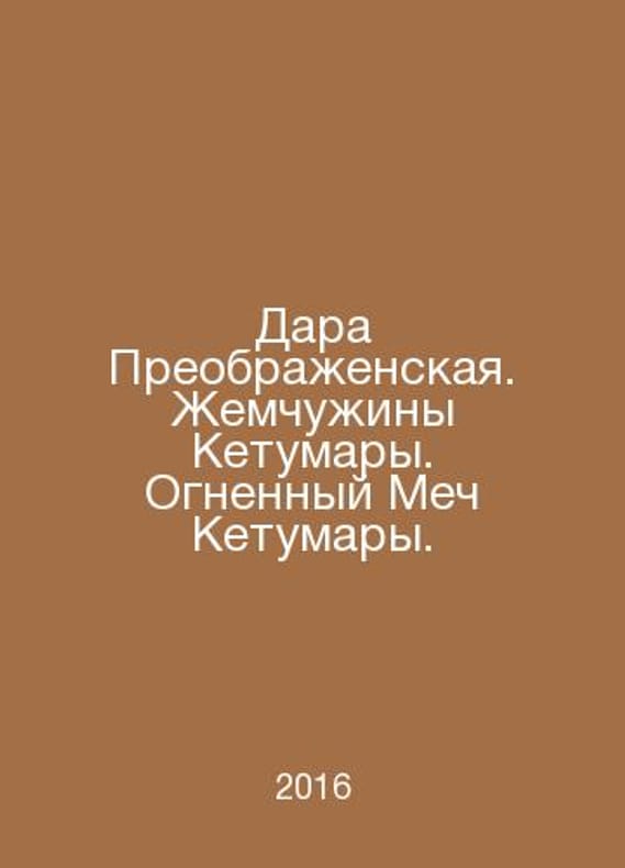 Dara Preobrazhenskaya. The Pearl of Ketumara. The Fire Sword of Ketumara. In Russian /Dara Preobrazhenskaya. Zhemchuzhiny Ketumary. Ognennyy Mech Ketumary. Penza Golden Ratio 2016. Contact us for details or to request photos of available books. Delivery of this book could take longer than normal due to additional handling time before shipping, and no rush delivery options are available. Please let us know if you have a specific date by which you need to receive your order. SKUalb0f406a9dd4f43f65