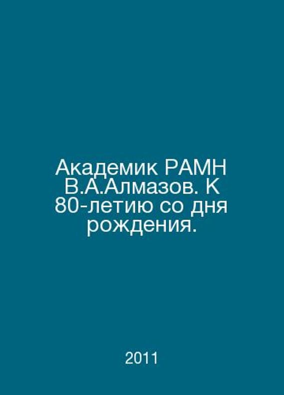 Academician of the Russian Academy of Medical Sciences V.A. Almazov. For the 80th anniversary of his birth. In Russian /Akademik RAMN V.A.Almazov. K 80-letiyu so dnya rozhdeniya. S.Pb.V.A.Almazov FSCE, 2011.. Contact us for details or to request photos of available books. SKUalb0f4ff1044ac98db5.