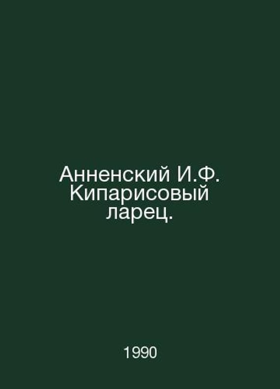 Annensky I.F. Cypress stall. In Russian /Annenskiy I.F. Kiparisovyy larets. Composition., author of the introductory article and note by N.A. Bogomolov. Decoration and S.Pb.artist. V.V.Sitnikov. M. Book. 1990. Contact us for details or to request photos of available books. Delivery of this book could take longer than normal due to additional handling time before shipping, and no rush delivery options are available. Please let us know if you have a specific date by which you need to receive your order.SKUalb0fd1917148ee31ea