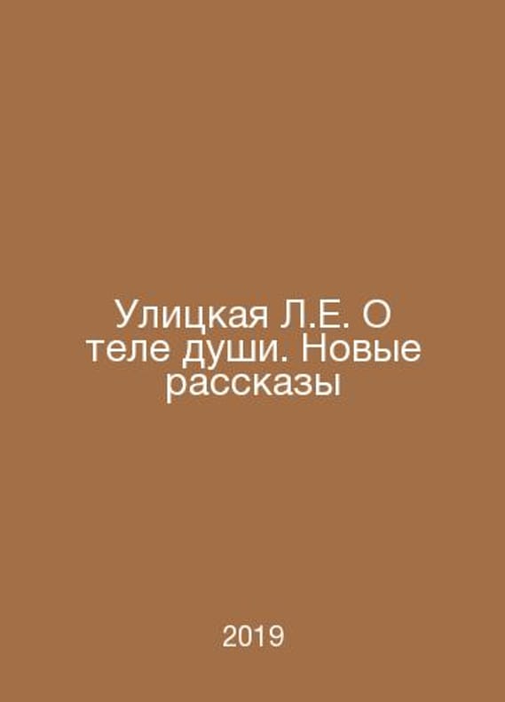 The Street L.E. On the Body of the Soul. New Stories In Russian /Ulitskaya L.E. O tele dushi. Novye rasskazy M. ACT 2019.Contact us for details or to request photos of available books. Delivery of this book could take longer than normal due to additional handling time before shipping, and no rush delivery options are available. Please let us know if you have a specific date by which you need to receive your order.SKUalb0fecc1c5e50372ea