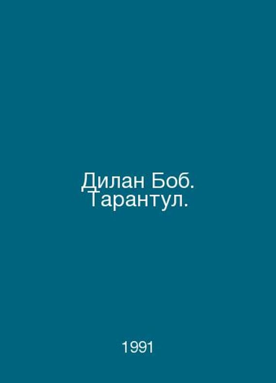 Dylan Bob. Tarantula. In Russian /Dilan Bob. Tarantul. Translation from English by M. Nemtsov. The design uses drawings by the author. Design by the artist M. Pavin. The translation was made according to the 1972 edition of Vladivostok Ulysses in 1991. Contact us for details or to request photos of available books. Delivery of this book could take longer than normal due to additional handling time before shipping, and no rush delivery options are available. Please let us know if you have a specific date by which you need to receive your order.SKUalb1061115eb73cf45c
