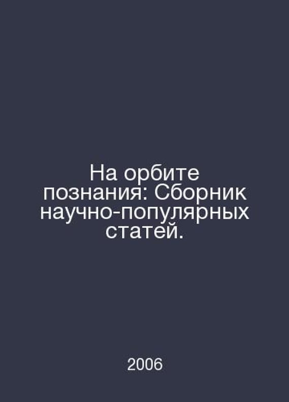 In the orbit of knowledge: A collection of popular science articles. In Russian /Na orbite poznaniya: Sbornik nauchno-populyarnykh statey. Series: The Man of the New Civilization. Edited by L. S. Gordina. Rostov-on-Don Phoenix 2006. Contact us for details or to request photos of available books. Delivery of this book could take longer than normal due to additional handling time before shipping, and no rush delivery options are available. Please let us know if you have a specific date by which you need to receive your order. SKUalb10ec29801ac63928