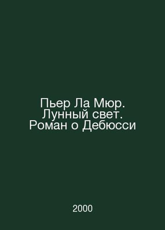 Pierre La Mur. Moonlight. A Novel About Debussy In Russian /Per La Myur. Lunnyy svet. Roman o Debyussi The Magic Flute series Moscow Agro 2000.Contact us for details or to request photos of available books. Delivery of this book could take longer than normal due to additional handling time before shipping, and no rush delivery options are available. Please let us know if you have a specific date by which you need to receive your order.SKUalb13196cc1557c9351