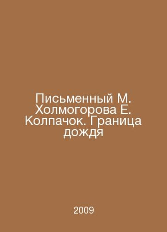 Writing by M. Kholmogorova E. Kolpachok. The Edge of Rain In Russian /Pismennyy M. Kholmogorova E. Kolpachok. Granitsa dozhdya Written by M. Kholmogorova E. Kolpachok. The Edge of Rain 2009.Contact us for details or to request photos of available books. Delivery of this book could take longer than normal due to additional handling time before shipping, and no rush delivery options are available. Please let us know if you have a specific date by which you need to receive your order.SKUalb14a56dfebac7d991