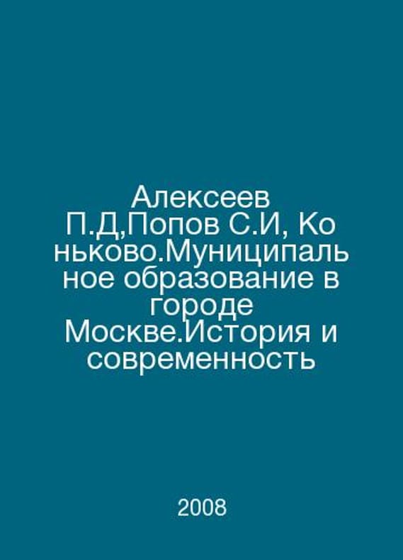 D. Alexeev, S.I. Popov, Konkov. Municipal Education in the City of Moskv.Past and Present In Russian /Alekseev D,Popov S.I, Konkovo.Munitsipalnoe obrazovanie v gorode Moskve.Istoriya i sovremennost M. RUDN 2008. Contact us for details or to request photos of available books. Delivery of this book could take longer than normal due to additional handling time before shipping, and no rush delivery options are available. Please let us know if you have a specific date by which you need to receive your order.SKUalb153d3907207c27d4