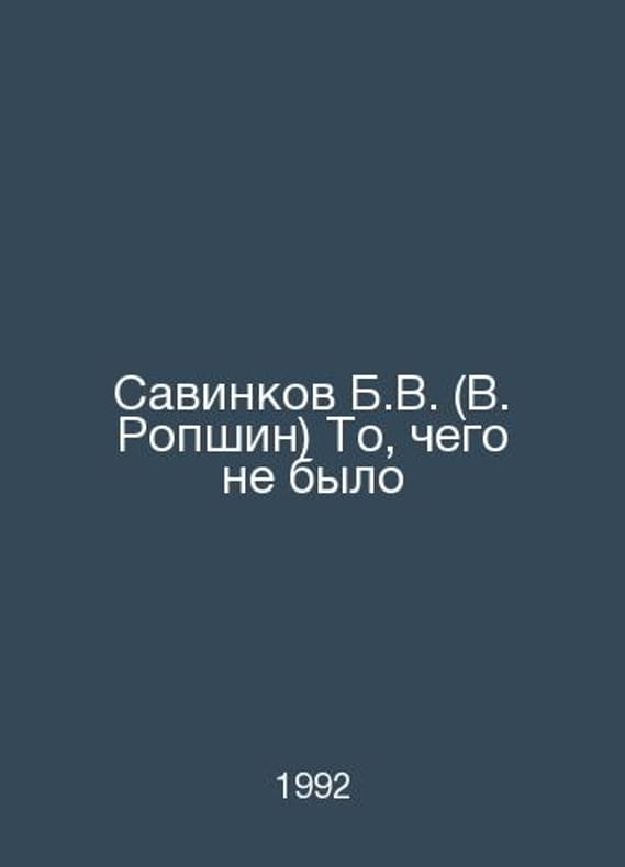 Savinkov B.V. (V. Ropshin) What Wasnt In Russian /Savinkov B.V. (V. Ropshin) To, chego ne bylo Novels, short stories, essays, poems by M Sovremennik 1992.Contact us for details or to request photos of available books. Delivery of this book could take longer than normal due to additional handling time before shipping, and no rush delivery options are available. Please let us know if you have a specific date by which you need to receive your order.SKUalb15497d9d8afbca7e