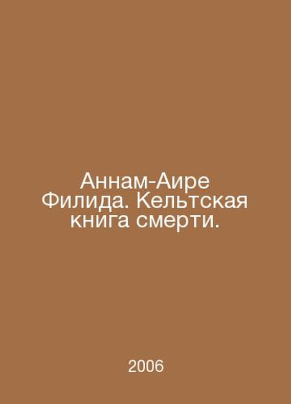 Annam-Ayre Filida: The Celtic Book of Death. In Russian /Annam-Aire Filida. Keltskaya kniga smerti. Series: Gold Fund Rostov & Phoenix 2006. Contact us for details or to request photos of available books. Delivery of this book could take longer than normal due to additional handling time before shipping, and no rush delivery options are available. Please let us know if you have a specific date by which you need to receive your order. SKUalb166f9f92744a5052