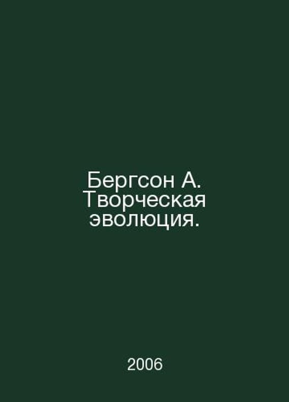 Bergson A. Creative Evolution. In Russian /Bergson A. Tvorcheskaya evolyutsiya. M. Kuchkovo field 2006.Contact us for details or to request photos of available books. Delivery of this book could take longer than normal due to additional handling time before shipping, and no rush delivery options are available. Please let us know if you have a specific date by which you need to receive your order.SKUalb16ec14f0142dc27c