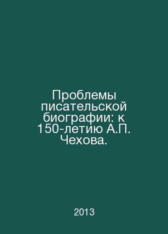 The Problems of Writers Biography: Towards the 150th Anniversary of A. Chekhov. In Russian /Problemy pisatelskoy biografii: k 150-letiyu A. Chekhova. Moscow: IMLI RAS, 2013. Contact us for details or to request photos of available books. Delivery of this book could take longer than normal due to additional handling time before shipping, and no rush delivery options are available. Please let us know if you have a specific date by which you need to receive your order. SKUalb17238fa76ae5e9a6