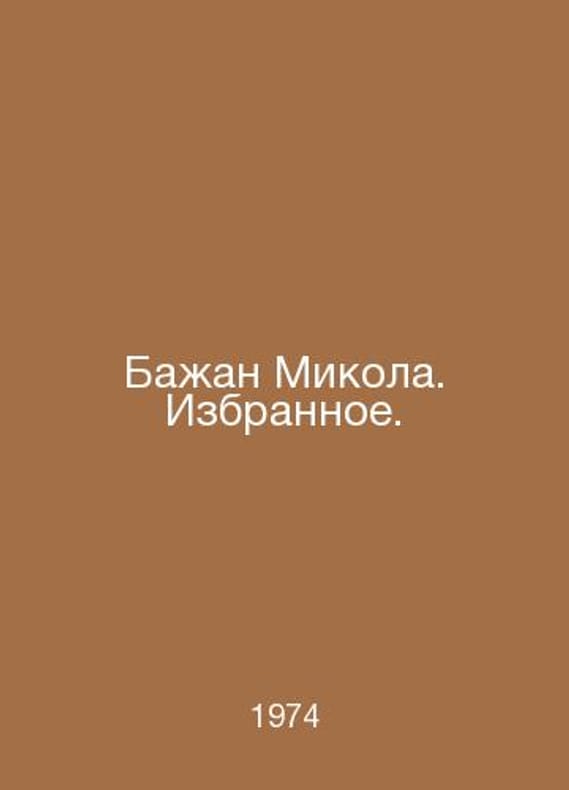 Bajan Mikola. Favourites. In Russian /Bazhan Mikola. Izbrannoe. Poems and poems translated from Ukrainian M Word. 1974.Contact us for details or to request photos of available books. Delivery of this book could take longer than normal due to additional handling time before shipping, and no rush delivery options are available. Please let us know if you have a specific date by which you need to receive your order.SKUalb17e7fabc356476c2