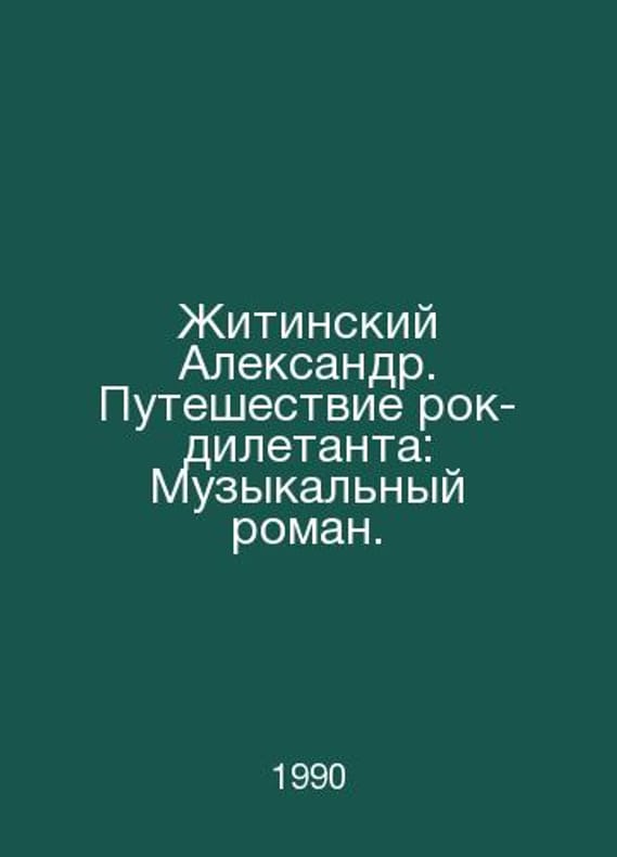 Alexander Zhitinsky: The Journey of a Rock Dilettante: A Musical Novel. In Russian /Zhitinskiy Aleksandr. Puteshestvie rok-diletanta: Muzykalnyy roman. Lenizdat. 1990. Contact us for details or to request photos of available books. Delivery of this book could take longer than normal due to additional handling time before shipping, and no rush delivery options are available. Please let us know if you have a specific date by which you need to receive your order.SKUalb1890524ca4d274eb