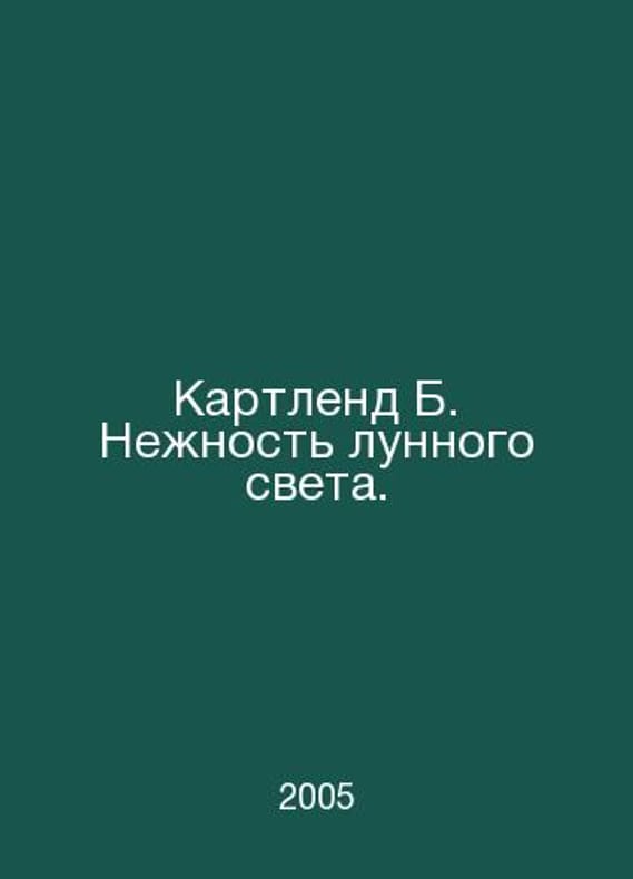 Cartland B. The tenderness of moonlight. In Russian /Kartlend B. Nezhnost lunnogo sveta. Novel, pen with English M AST 2005. Contact us for details or to request photos of available books. Delivery of this book could take longer than normal due to additional handling time before shipping, and no rush delivery options are available. Please let us know if you have a specific date by which you need to receive your order. SKUalb18a5e7715a1af194