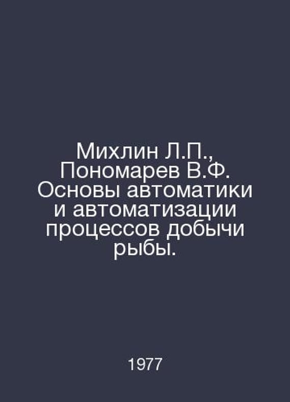 Mikhlin L., Ponomarev V.F. Fundamentals of automation and automation of fish extraction processes. In Russian /Mikhlin L., Ponomarev V.F. Osnovy avtomatiki i avtomatizatsii protsessov dobychi ryby. A textbook for university students. Moscow: Food industry, 1977.. Contact us for details or to request photos of available books. SKUalb18e9df5102c06d9e.