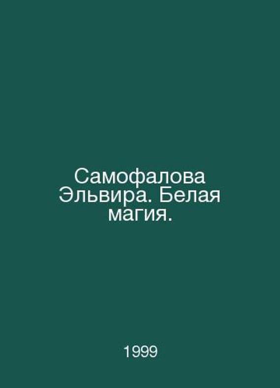 Elvira Samofalova. White Magic. In Russian /Samofalova Elvira. Belaya magiya. In 3 Volumes. Series: Lessons in Magic. Contact us for details or to request photos of available books. Delivery of this book could take longer than normal due to additional handling time before shipping, and no rush delivery options are available. Please let us know if you have a specific date by which you need to receive your order. SKUalb19451aecda568fe5