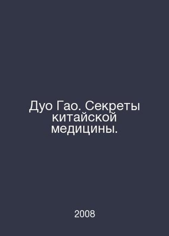 Duo Gao: The Secrets of Chinese Medicine. In Russian /Duo Gao. Sekrety kitayskoy meditsiny. M. Contant. 2008.Contact us for details or to request photos of available books. Delivery of this book could take longer than normal due to additional handling time before shipping, and no rush delivery options are available. Please let us know if you have a specific date by which you need to receive your order.SKUalb19c0f7b308e585e6