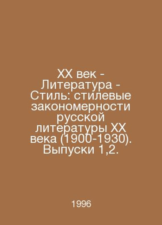 The 20th Century - Literature - Style: Style Patterns of Russian Literature of the 20th Century (1900-1930). Issues 1,2. In Russian /KhKh vek - Literatura - Stil: stilevye zakonomernosti russkoy literatury KhKh veka (1900-1930). Vypuski 1,2. Yekaterinburg. Ural State University. 1994, 1996. Contact us for details or to request photos of available books. Delivery of this book could take longer than normal due to additional handling time before shipping, and no rush delivery options are available. Please let us know if you have a specific date by which you need to receive your order. SKUalb19e5af3f4a909fe5