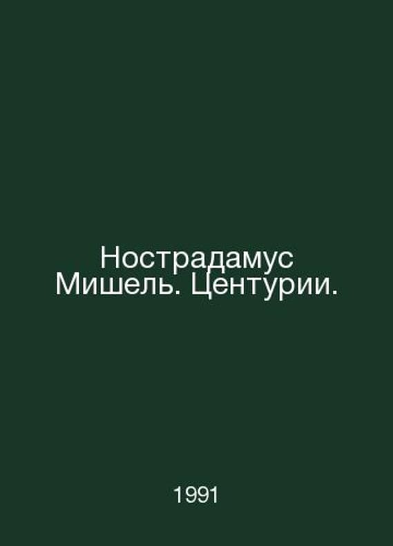 Nostradamus Michel. Centurions. In Russian /Nostradamus Mishel. Tsenturii. Molok A.L., Nazarov S. - composed by M. Parity. 1991. Contact us for details or to request photos of available books. Delivery of this book could take longer than normal due to additional handling time before shipping, and no rush delivery options are available. Please let us know if you have a specific date by which you need to receive your order. SKUalb1ca8a3337d610a9e