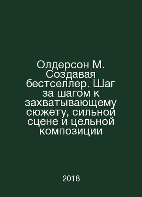 Alderson M. Making a bestseller. Step by step to an exciting plot, a strong stage and a solid composition In Russian /Olderson M. Sozdavaya bestseller. Shag za shagom k zakhvatyvayushchemu syuzhetu, silnoy stsene i tselnoy kompozitsii Translated from English by M. Mann, Ivanov and Ferber. 2018. Contact us for details or to request photos of available books. Delivery of this book could take longer than normal due to additional handling time before shipping, and no rush delivery options are available. Please let us know if you have a specific date by which you need to receive your order. SKUalb1d2f7da33a14125a