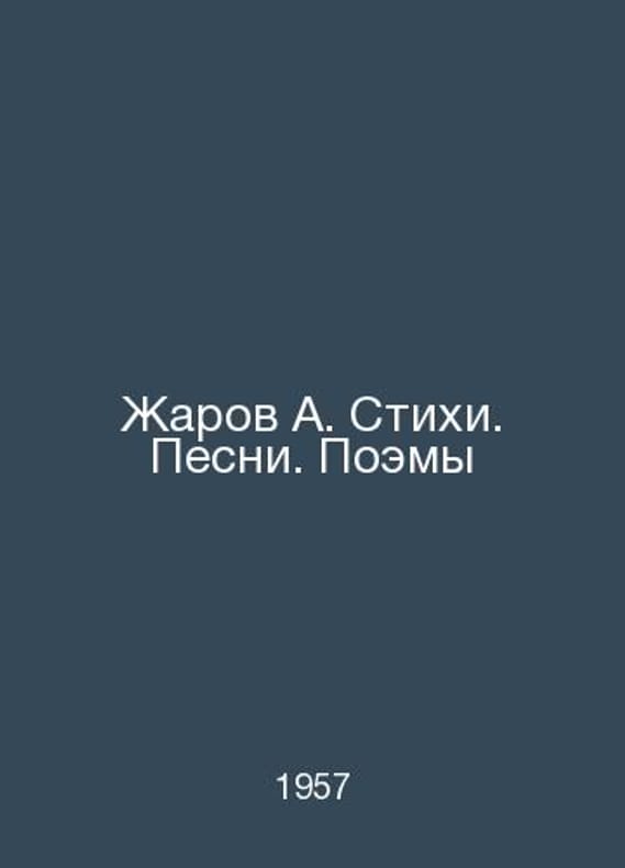 Zharov A. Poems. Songs. Poems In Russian /Zharov A. Stikhi. Pesni. Poemy The bible of Soviet poetry M HL 1957.Contact us for details or to request photos of available books. Delivery of this book could take longer than normal due to additional handling time before shipping, and no rush delivery options are available. Please let us know if you have a specific date by which you need to receive your order.SKUalb1e392875aceb2303