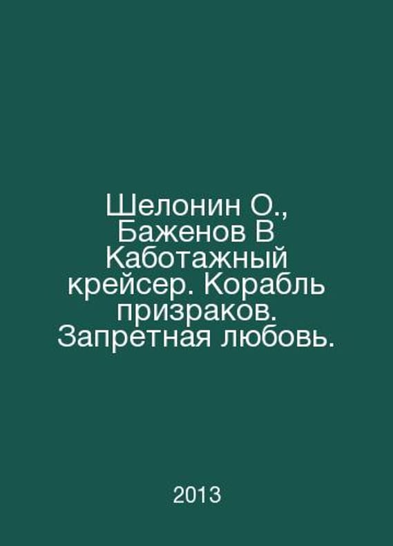 Shelonin O., Bazhenov In a Cabotage Cruiser. A Ghost Ship. Forbidden Love. In Russian /Shelonin O., Bazhenov V Kabotazhnyy kreyser. Korabl prizrakov. Zapretnaya lyubov. Series: Humorous fiction. M. Alpha-book 2013-2014.Contact us for details or to request photos of available books. Delivery of this book could take longer than normal due to additional handling time before shipping, and no rush delivery options are available. Please let us know if you have a specific date by which you need to receive your order.SKUalb1f7fa61c1d98ade0