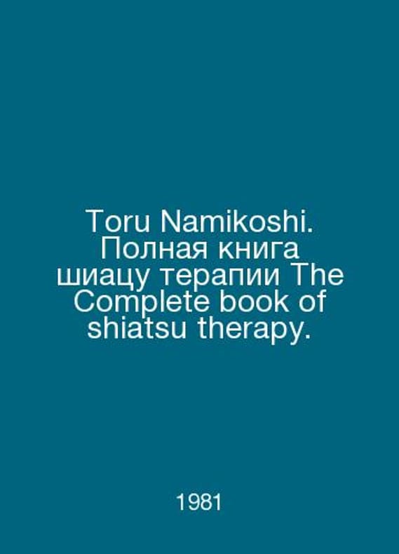 Toru Namikoshi. The Complete book of shiatsu therapy. In English /Toru Namikoshi. Polnaya kniga shiatsu terapii The Complete book of shiatsu therapy. In English. Tokyo Japan Publications. 1981.Contact us for details or to request photos of available books. Delivery of this book could take longer than normal due to additional handling time before shipping, and no rush delivery options are available. Please let us know if you have a specific date by which you need to receive your order.SKUalb1f812ad66baa81d1