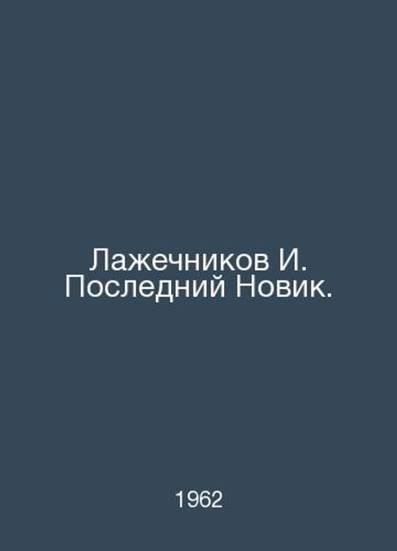 Laghechnikov I. Last Novik. In Russian /Lazhechnikov I. Posledniy Novik. M Izvestia 1962.Contact us for details or to request photos of available books. Delivery of this book could take longer than normal due to additional handling time before shipping, and no rush delivery options are available. Please let us know if you have a specific date by which you need to receive your order.SKUalb2061035e5e5c7b5b