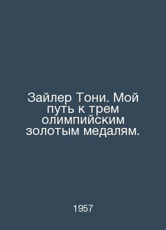 Seiler Tony. My way to three Olympic gold medals. In Russian /Zayler Toni. Moy put k trem olimpiyskim zolotym medalyam. Translation from German master of sports F. Kropf. M. Physical culture and sport 1957. Contact us for details or to request photos of available books. Delivery of this book could take longer than normal due to additional handling time before shipping, and no rush delivery options are available. Please let us know if you have a specific date by which you need to receive your order.SKUalb2075cc0958eb7cc8
