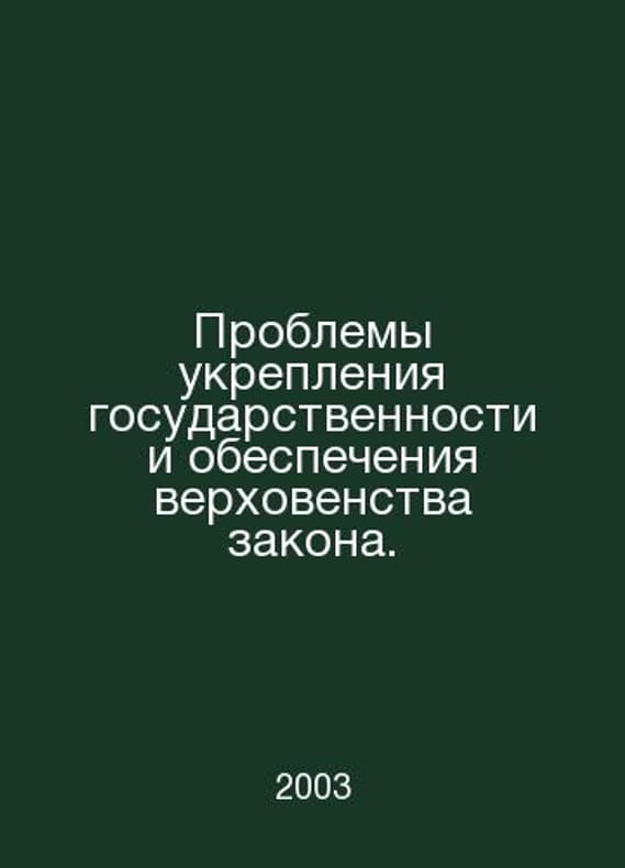 The challenges of strengthening statehood and ensuring the rule of law. In Russian /Problemy ukrepleniya gosudarstvennosti i obespecheniya verkhovenstva zakona. Proceedings of the Anniversary Scientific and Practical Conference dedicated to the 45th Anniversary of Continuing Legal Education at the DVSU (Vladivostok, 30 September-1 October 2003).Contact us for details or to request photos of available books. Delivery of this book could take longer than normal due to additional handling time before shipping, and no rush delivery options are available. Please let us know if you have a specific date by which you need to receive your order.SKUalb20b76c5359767aad