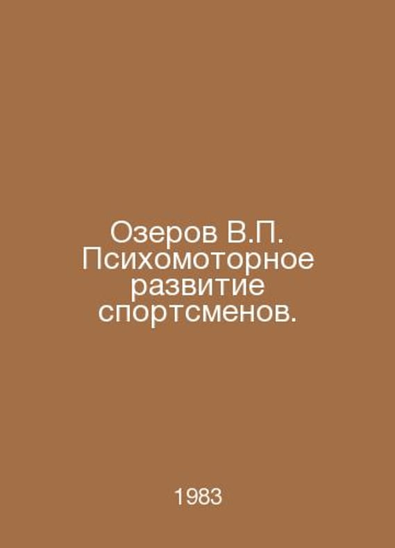 Ozerov V. Psychomotor development of athletes. In Russian /Ozerov V. Psikhomotornoe razvitie sportsmenov. Chisinau, Stiinca, 1983.Contact us for details or to request photos of available books. Delivery of this book could take longer than normal due to additional handling time before shipping, and no rush delivery options are available. Please let us know if you have a specific date by which you need to receive your order.SKUalb20e3cb401b871aaf
